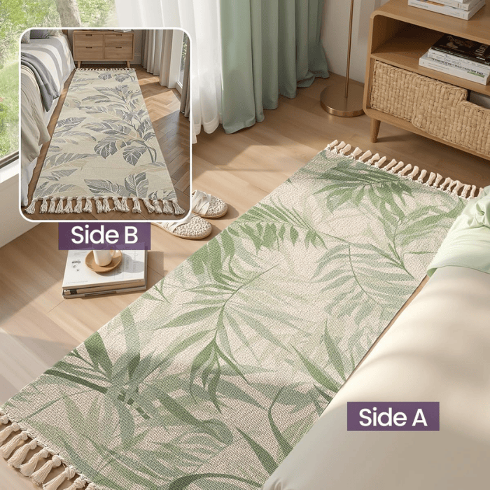 Unique double-sided design featuring two complementary botanical leaf patterns.