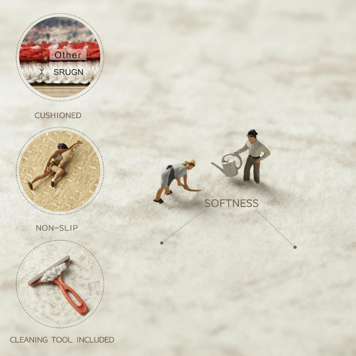 Ultra Soft & Cushioned Comfort: Made from thick faux wool and recycled polyester fibers, offering a plush, cozy feel underfoot — perfect for living rooms and bedrooms.