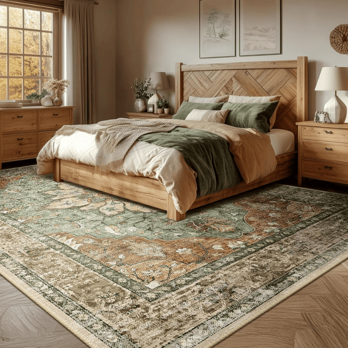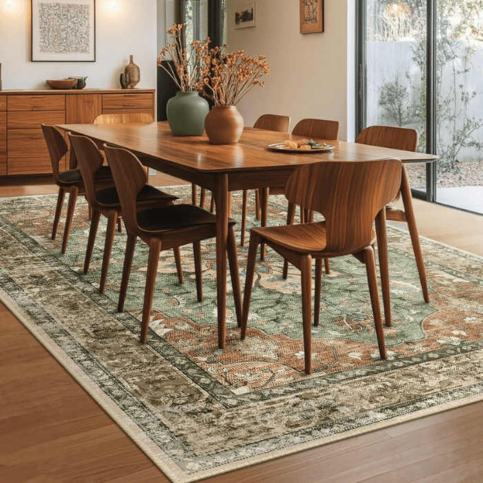 Vintage Floral Medallion Design: Features a distressed print in brick red, rust, and neutral brown tones, adding a classic touch to your décor.